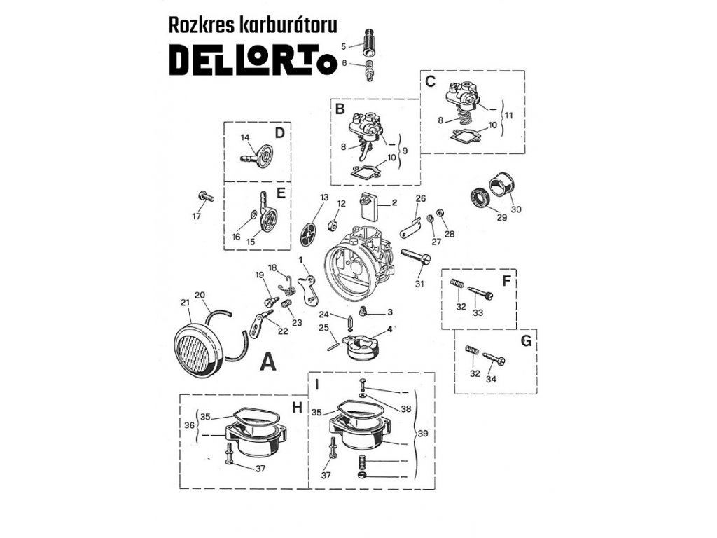 Karburátor DELLORTO - velké sání s přírubou a plynovým lankem na Babettu 207,210,225