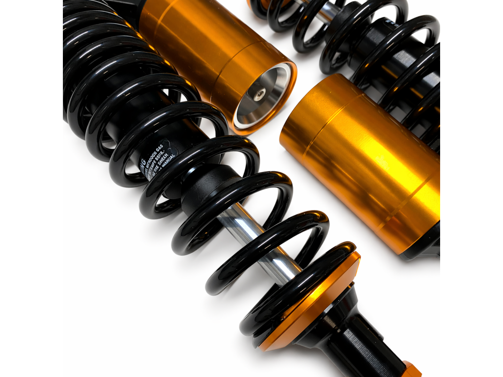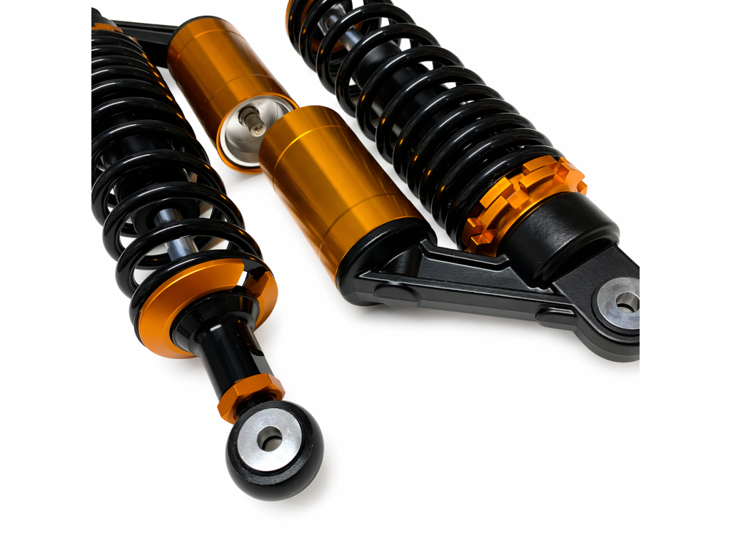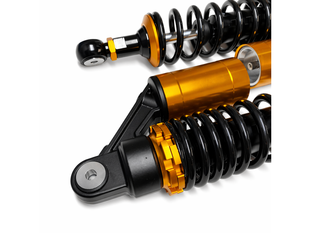 Plynové zadní teleskopy v černo-zlatém provedení určené pro tuning.